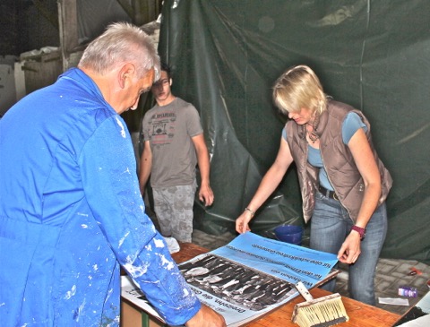 Mit vereinten Kräften ging es nun los die Wahlplakate zu kleben. Wir hatten dabei eine Menge Spaß.