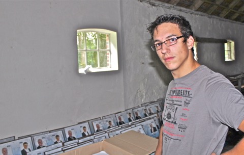 Zufrieden mit den Plakaten. Kandidat Finn Hanke