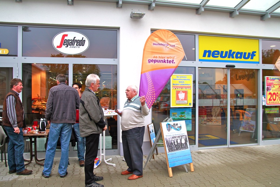 Spitzenkandidat Helmut Höpken im Gespräch vor dem Edeka Markt